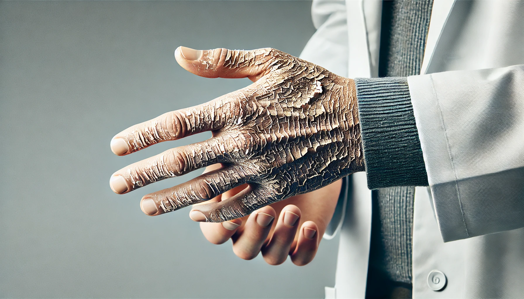 만성 피부염의 일종으로, 손바닥과 손가락 끝에서 벗겨짐이 나타날 수 있습니다.