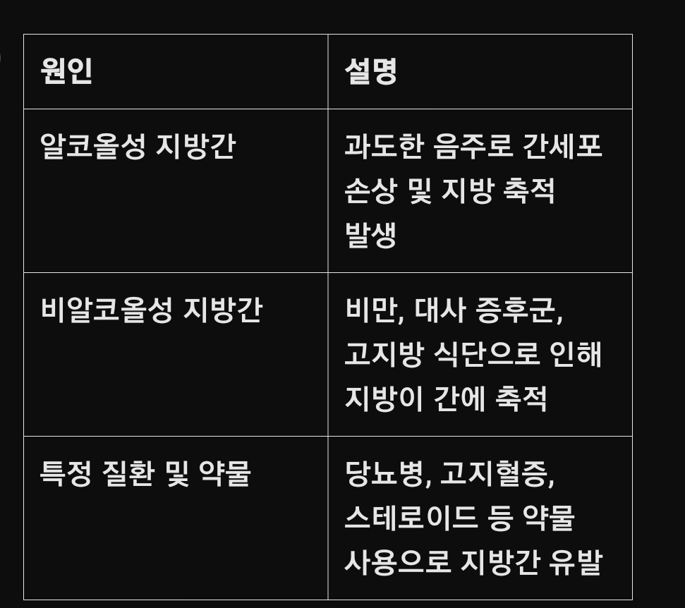 특정 질환이나 약물도 지방간을 유발할 수 있습니다.