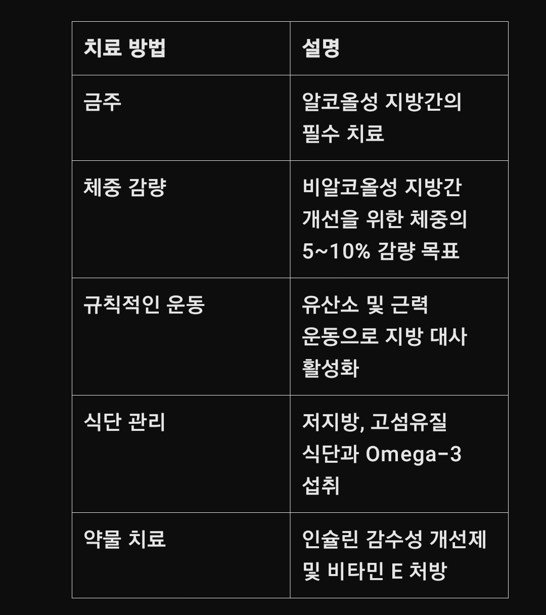 비알코올성 지방간은 생활습관 개선이 핵심입니다. 약물 치료보다는 체중 감량과 식습관 변화가 중요합니다.