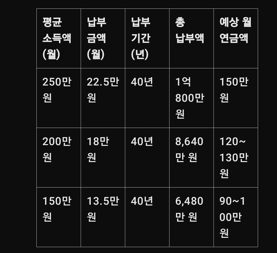 3. 수령 기준: 납입 기간과 금액에 따라 연금액이 결정됩니다.