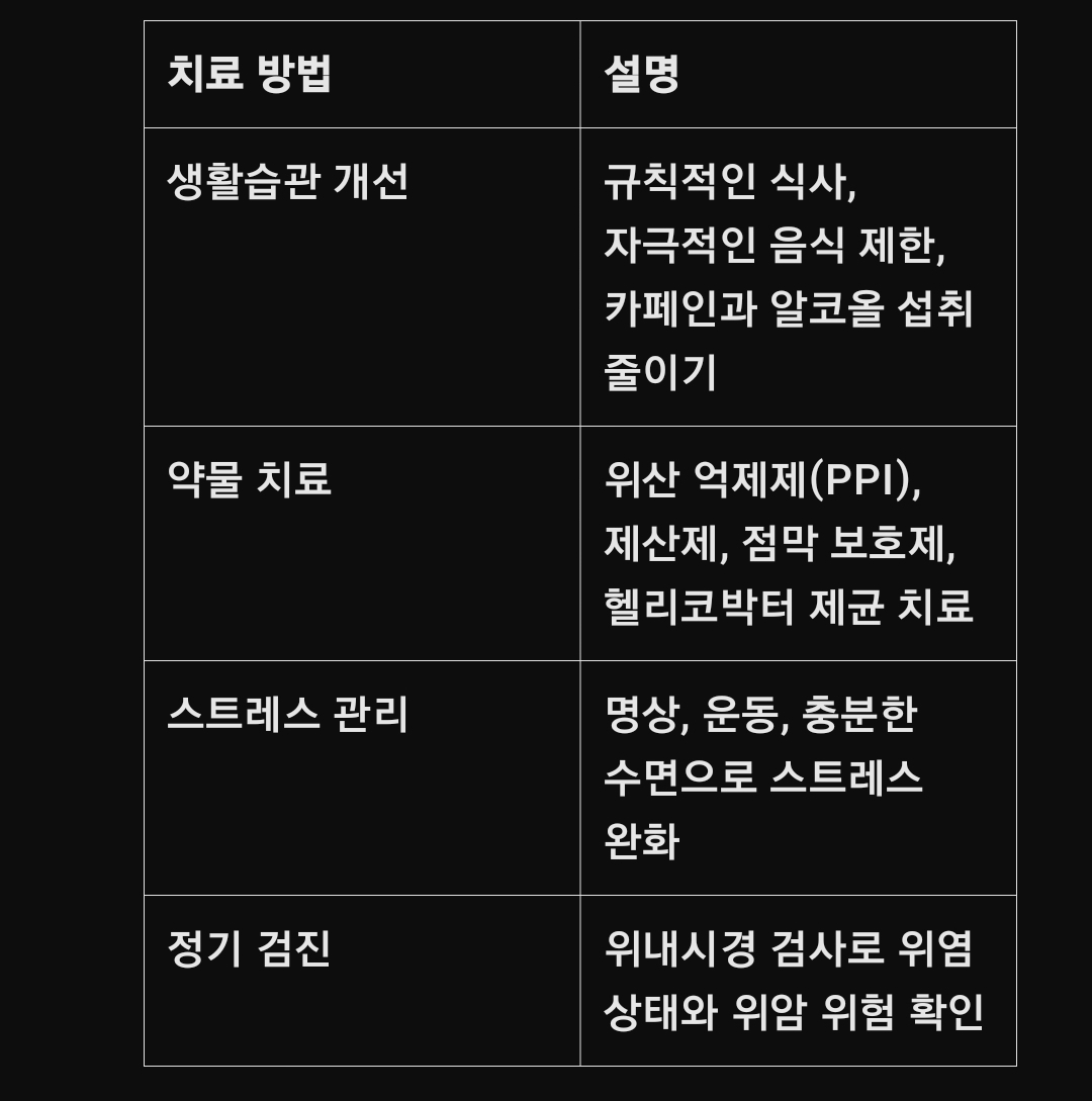 지속적인 관리: 치료 후에도 생활습관을 유지하며 위 점막이 다시 손상되지 않도록 주의해야 했다.