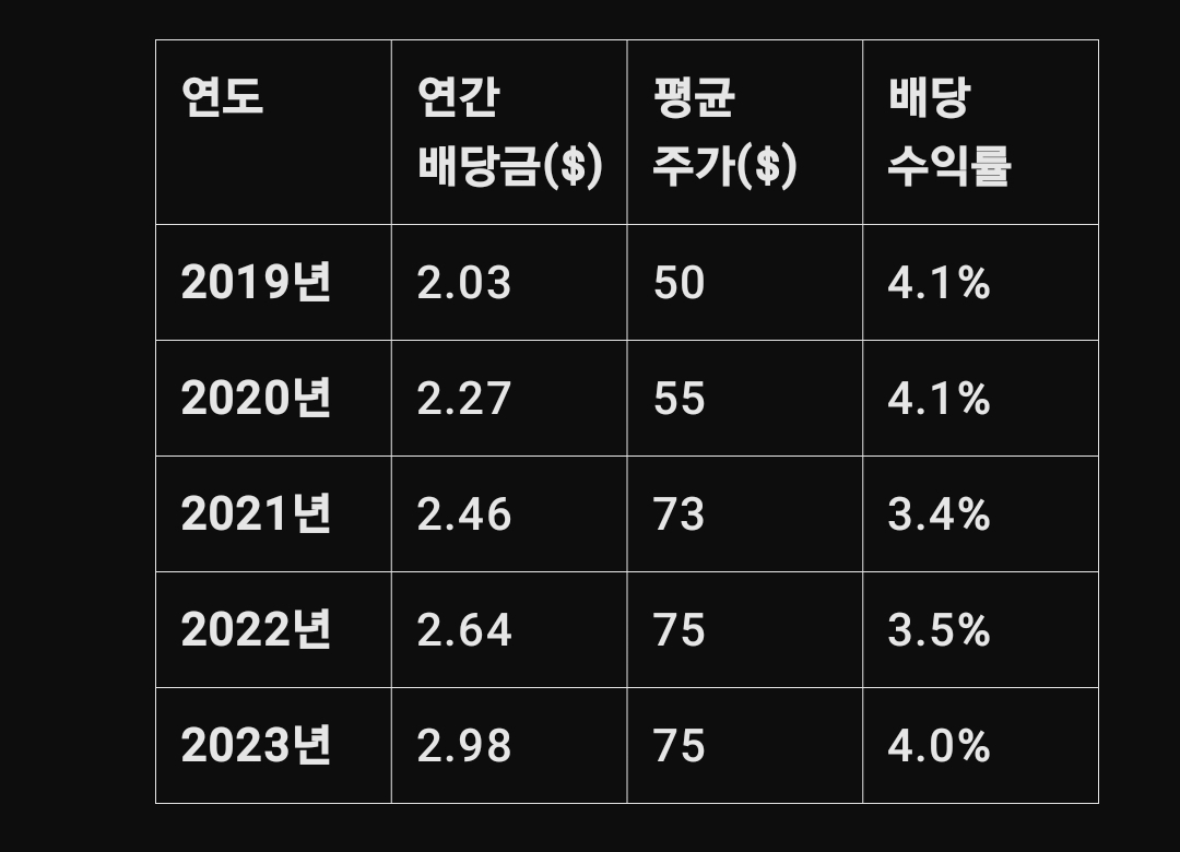 이는 장기적으로 배당 수익이 꾸준히 증가할 가능성을 높입니다.