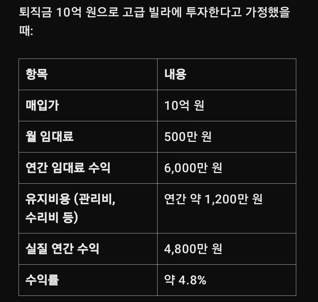 50대 퇴직 후 퇴직금을 활용한 고급 빌라 투자: 안정적인 임대 수익과 자산 가치 상승의 비결