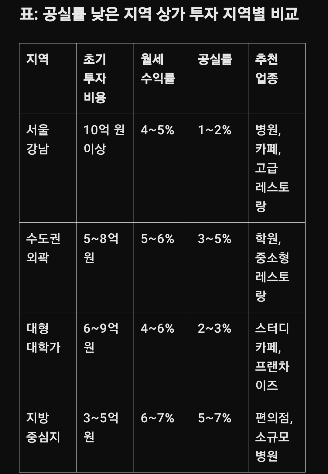 공실률 낮은 지역 상가 투자 전략
