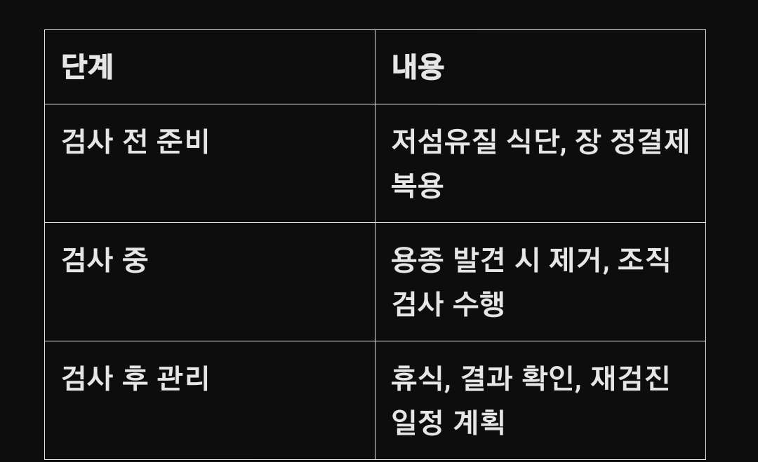 필요 시 용종 제거 및 조직 검사.