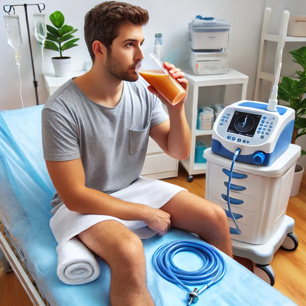 대장을 깨끗이 비우기 위해 정결제를 복용.