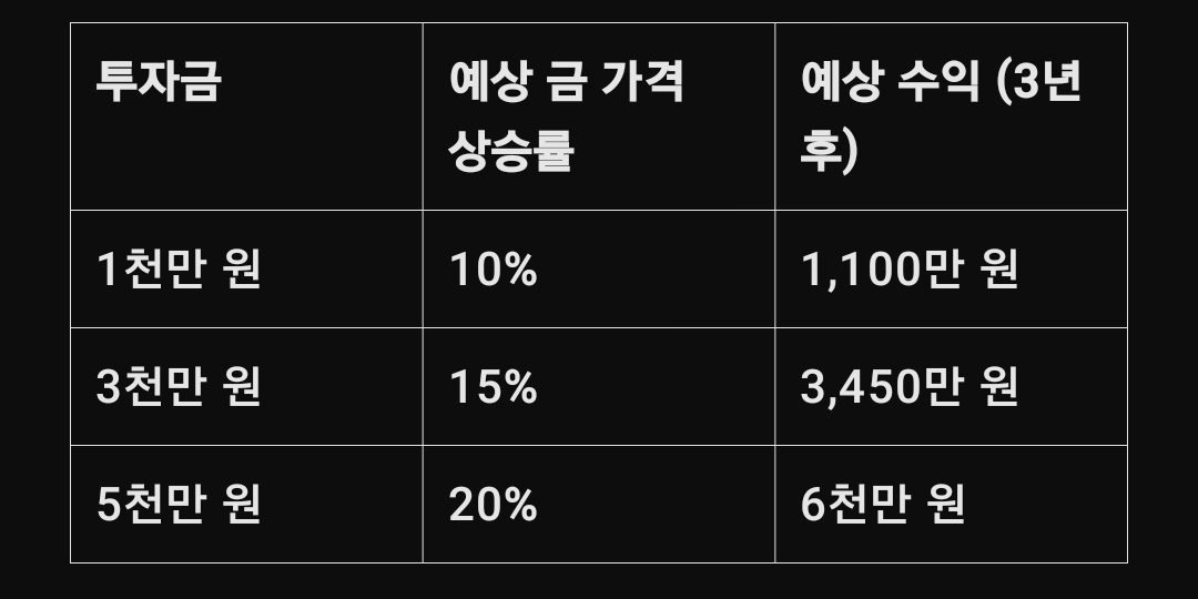 3년 후 금 가격 상승(한돈 30만 원 → 40만 원)