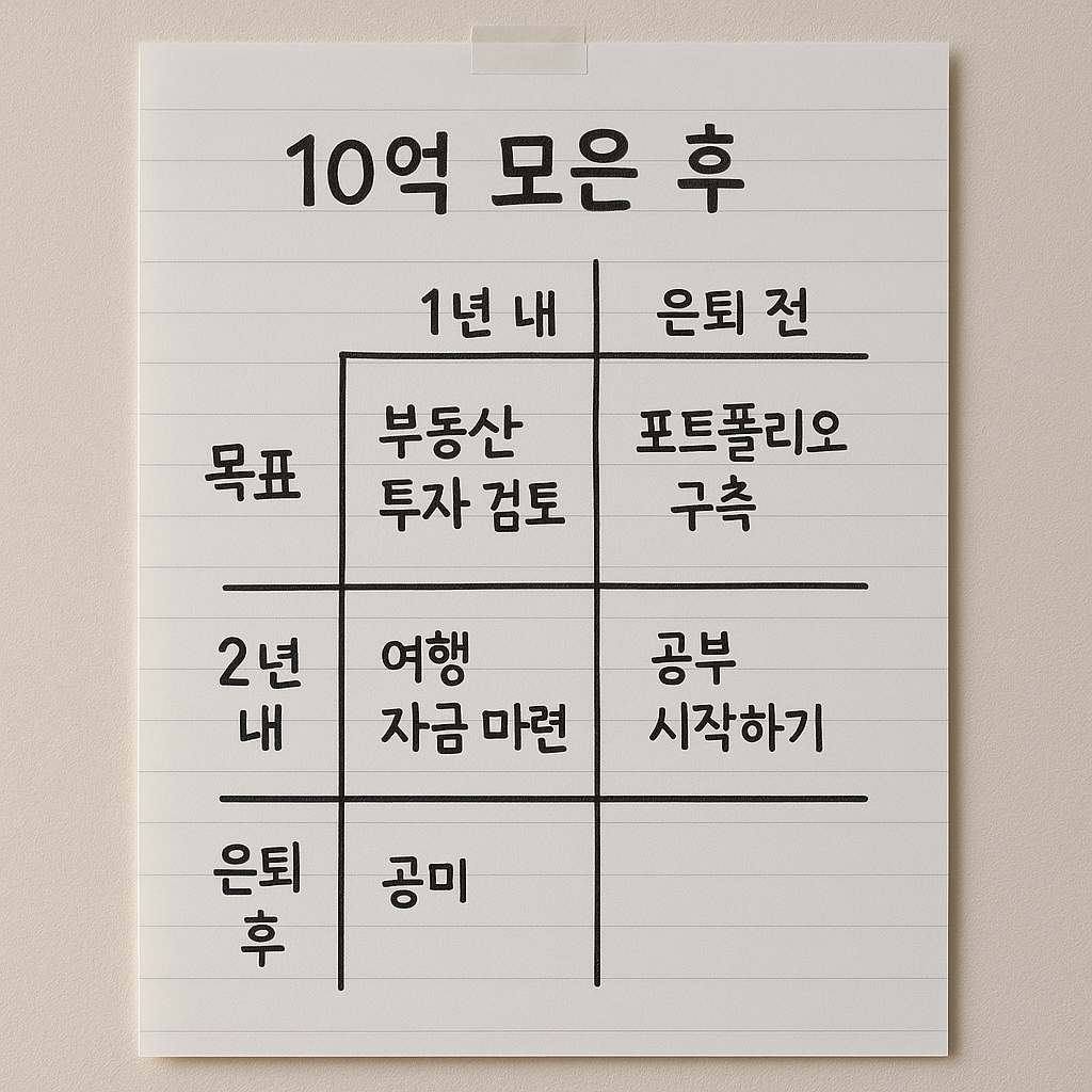10억 모은 후 무엇을 할 것인가? 계획표 그리기