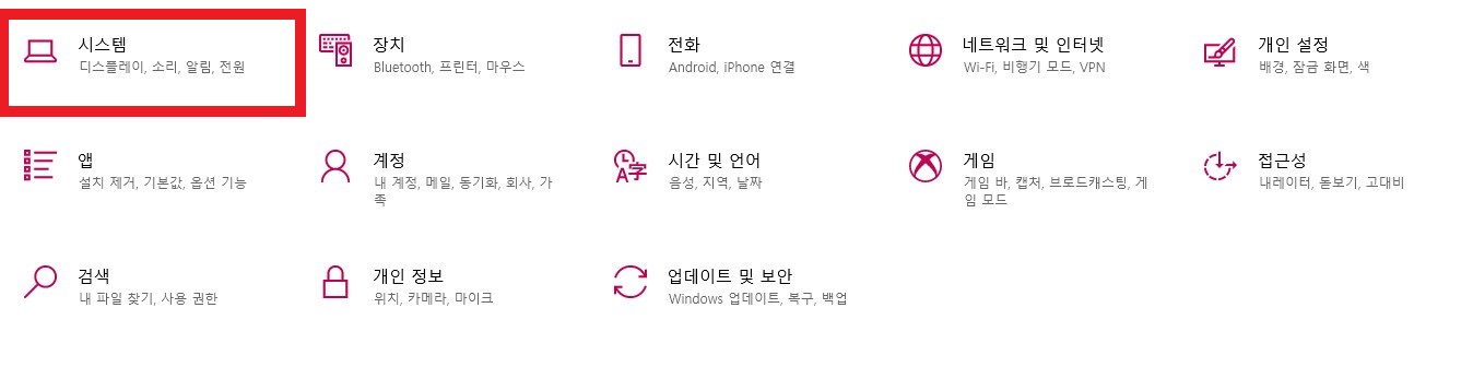 2. 톱니바퀴 설정 버튼을 누르면 [시스템]이 보이실 겁니다.