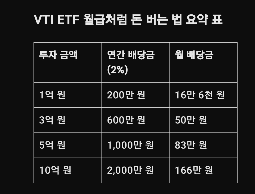 VTI ETF로 월급처럼 돈 받는 법, 초보도 쉽게 시작하는 안정적인 투자 전략