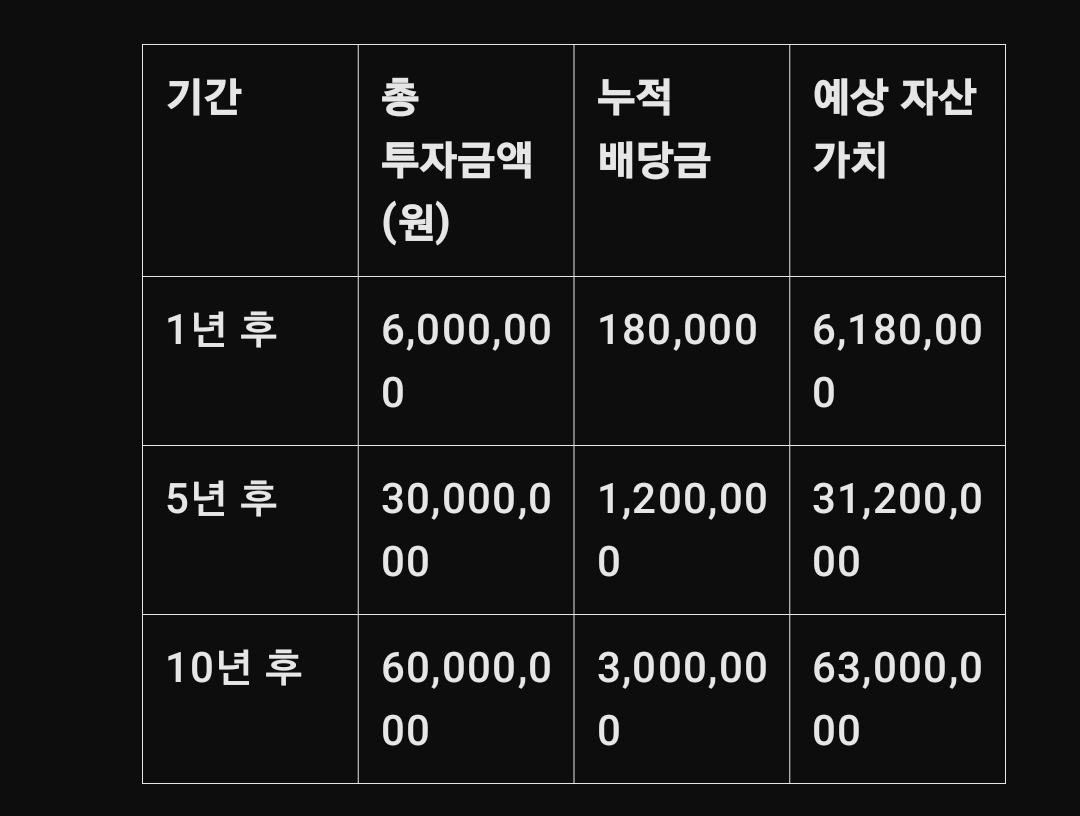 1년 후 배당금 6,000원 x 100주 = 600,000원