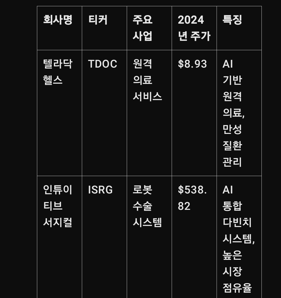2. 주요 AI 헬스케어 기업과 주식 분석